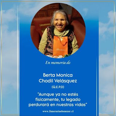 Berta Monica Chodil Velásquez (Q.E.P.D) acaecida a la edad de 71 años.