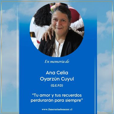Ana Celia Oyarzún Cuyul (Q.E.P.D) acaecida a la edad de 66 años en la ciudad de Santiago.