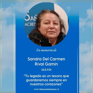 Sandra Del Carmen Rival Gamín (Q.E.P.D) acaecida a la edad de 48 años.